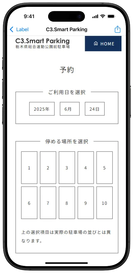 「ご利用日」と「停める場所」を選択し、「予約者情報」を入力します。