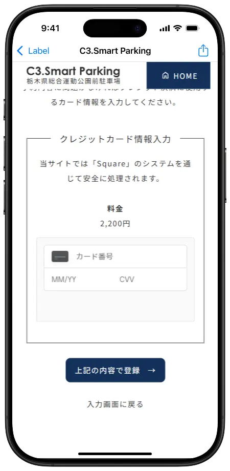 入力した情報を確認後、クレジット情報を入力し、予約・決済を行います。